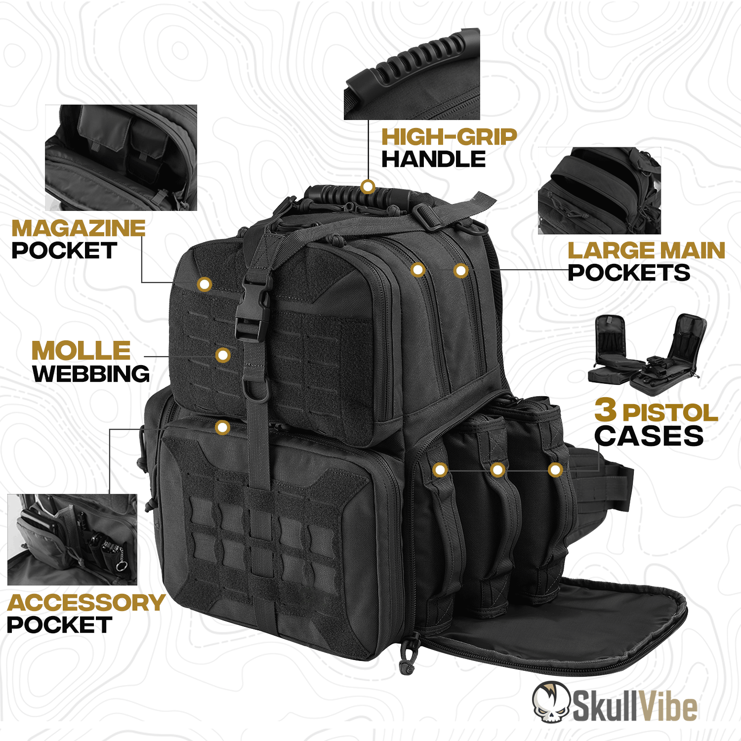 The svPro Tactical Range Backpack is a must-have for shooting enthusiasts and law enforcement officers. Made with rugged 1000D polyester, it's built to withstand tough conditions.