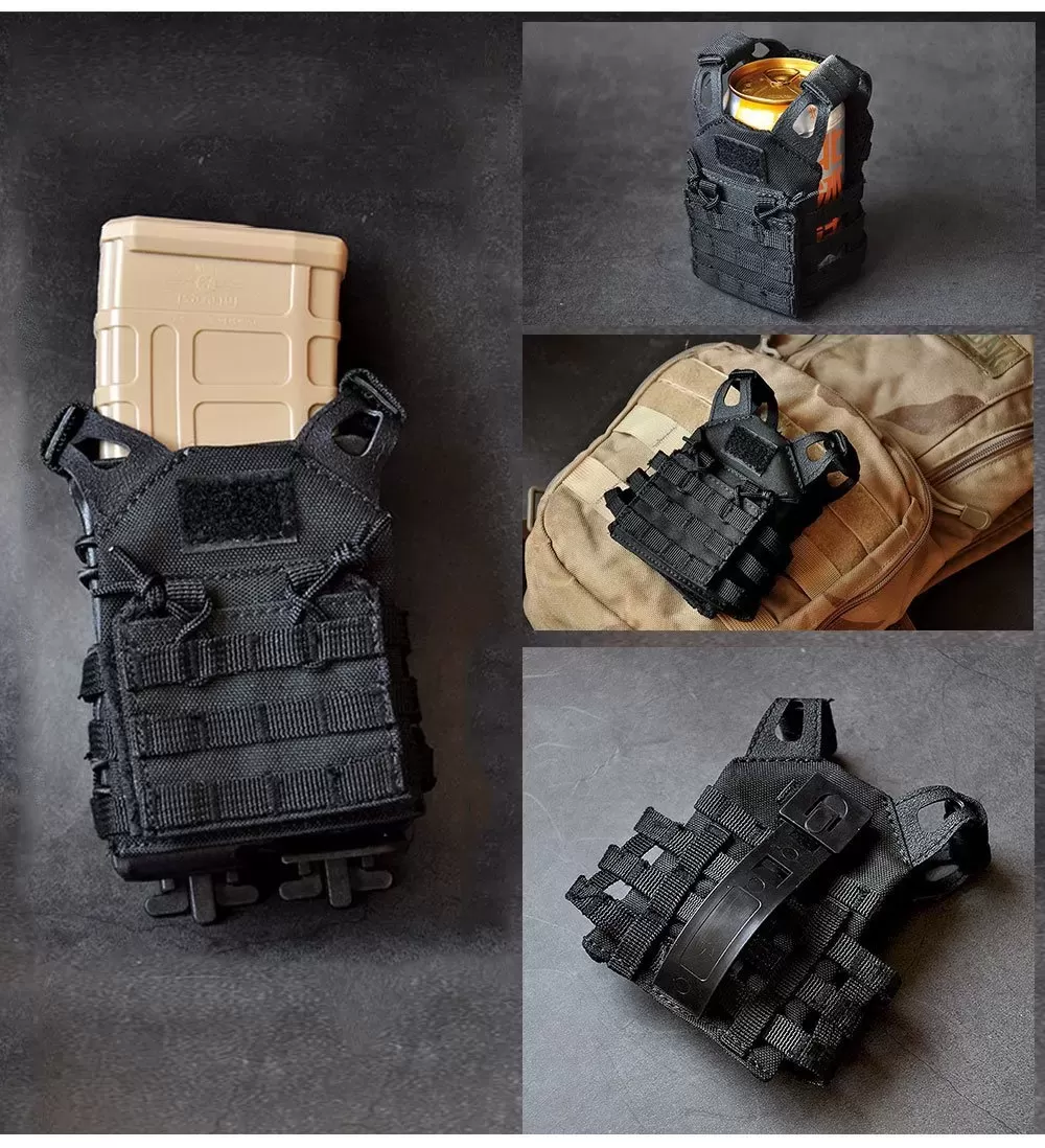 TACTICAL DESIGN: This beverage cooler design is inspired by a military molle tactical vest. This unique design will have your can or bottle looking great and ready to charge, literally!
