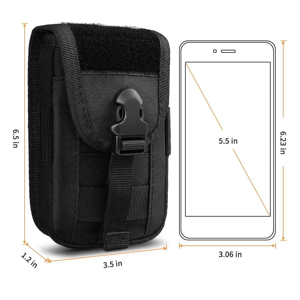 - MOLLE SYSTEM: EDC phone pouch has strong webbing belt loops on the rear, deadly hard wearing & heavy duty. The buckle strap on the back could be attached to a tactical backpack, combat vest, belt, or other tactical gears as an extra exterior pouch or carry it as a normal pouch to secure essential gears.