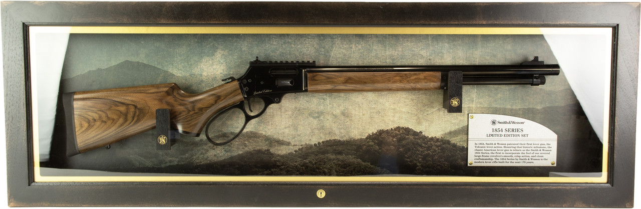 Introducing the Model 1854 by Smith & Wesson, a triumph of over 170 years of craftsmanship. This lever-action rifle seamlessly melds precision engineering and timeless design with modern features, including a Picatinny rail for optics. Experience the perfect blend of heritage and innovation - experience Smith & Wesson Smooth.